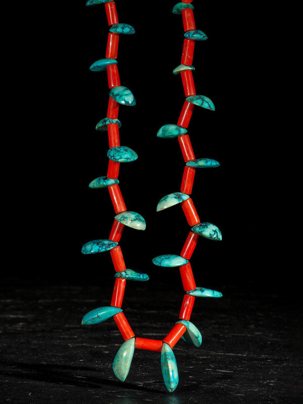 Turquoise and Coral Necklace from Asa Glascock Trading Post, Gallup, New Mexico