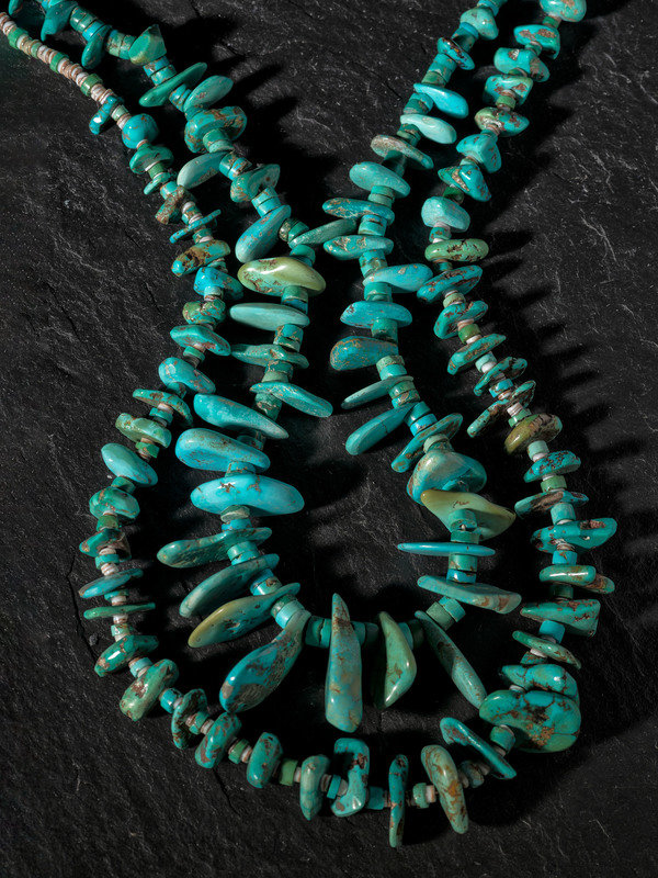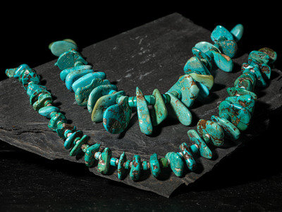 Pair of Navajo or Pueblo Single-strand Turquoise Tab Necklaces