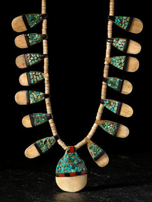 Kewa Depression Era Mosaic Inlay Tab Necklace