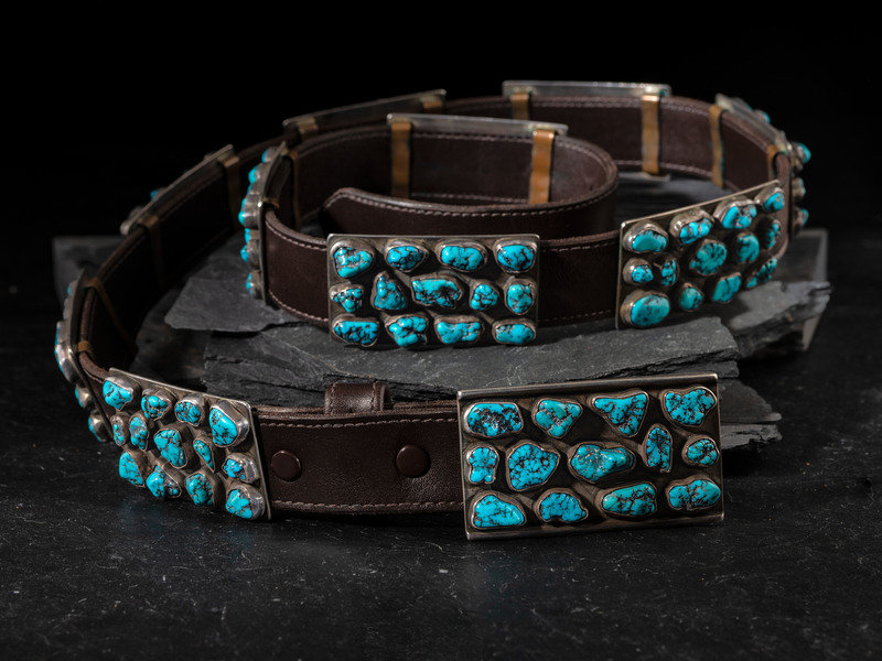 Silver and Turquoise Cluster Concha Belt