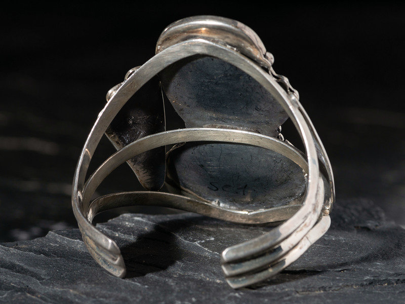 cuff width 2-3/4 inches, interior circumference 5-1/4 inches x gap length 7/8 inch, weight 47.1 dwt.