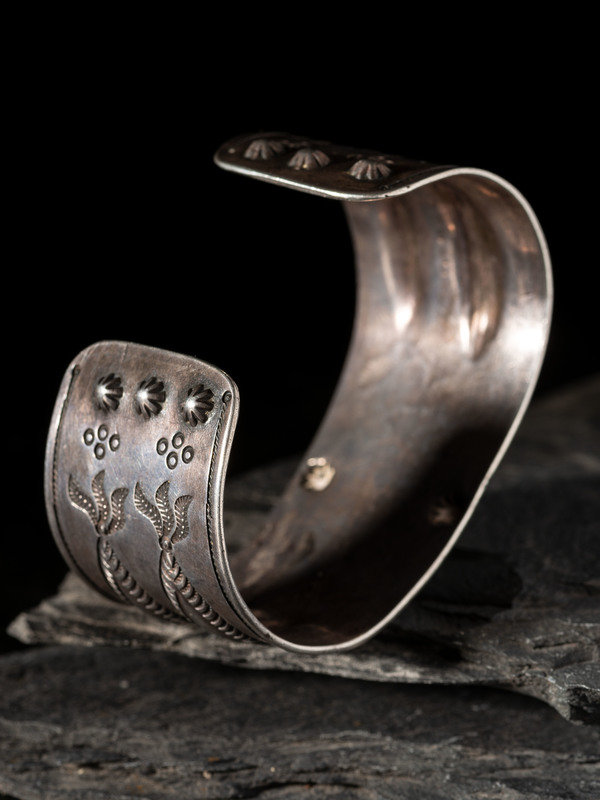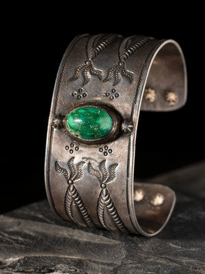 Navajo Ingot Silver and Turquoise Cuff Bracelet, with Repousse Accents