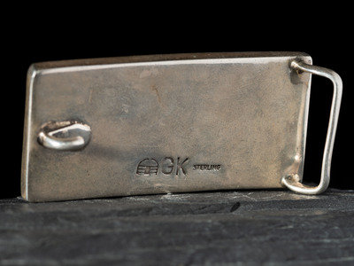 length 2-1/2 inches x width 1-1/4 inches, belt width 1 inch, weight 30.2 dwt.