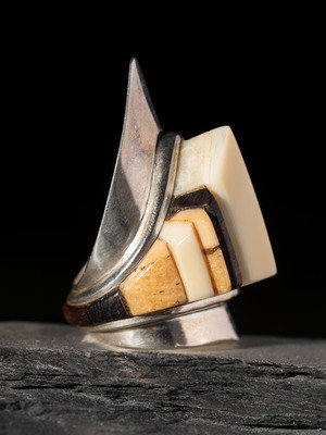 Silver Shield Ring, with Inlay