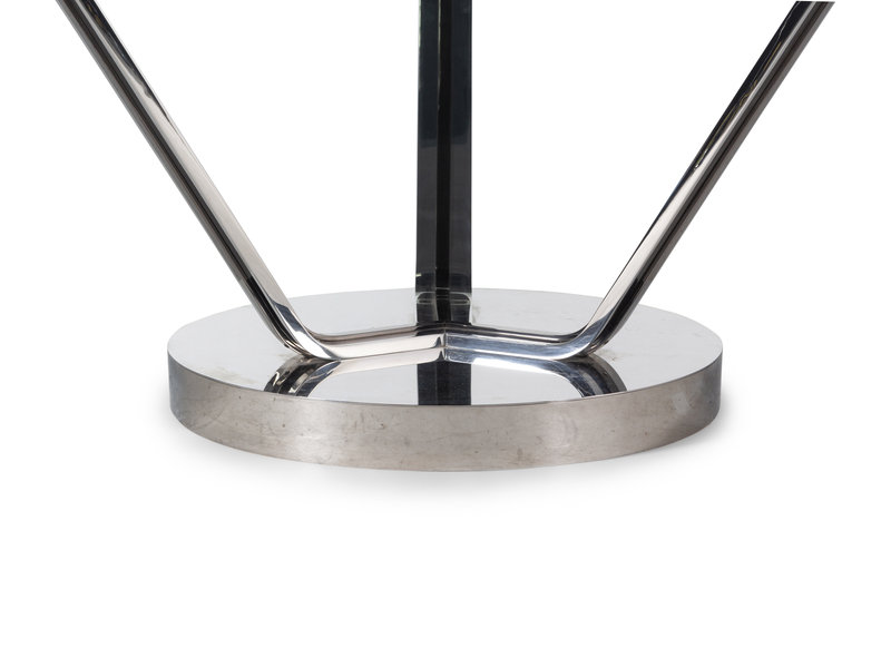 chromed metal, brass, glass