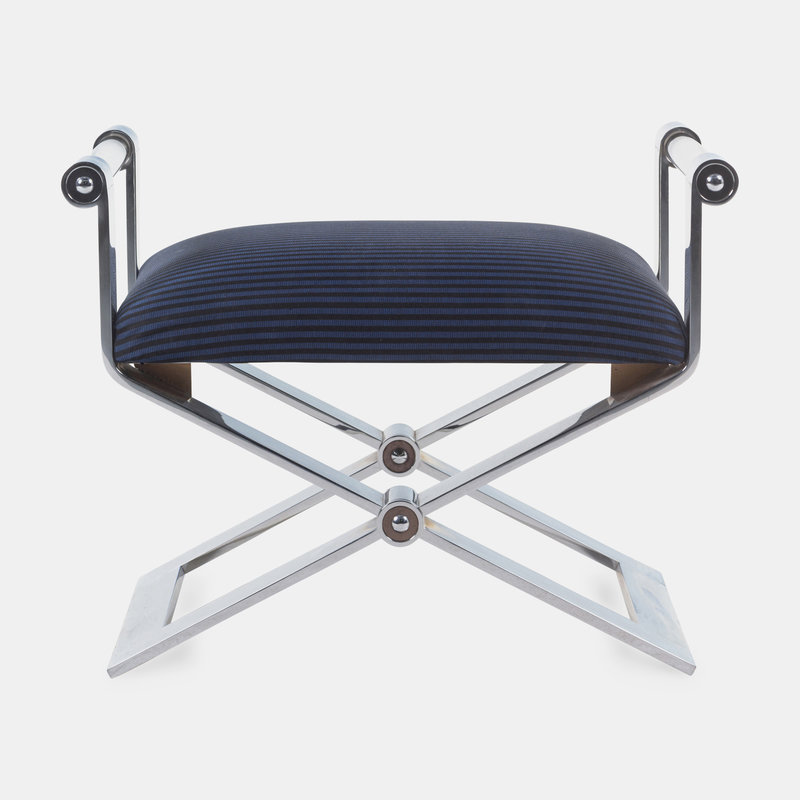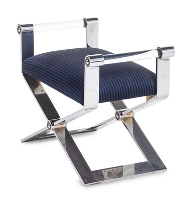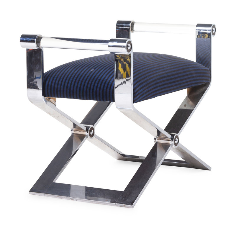 chrome-plated metal, upholstery, lucite