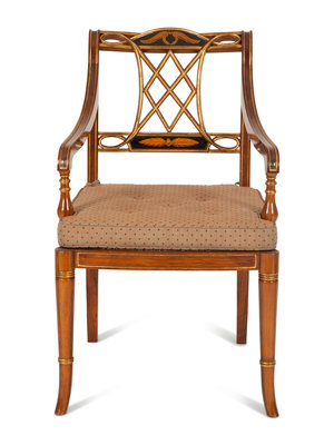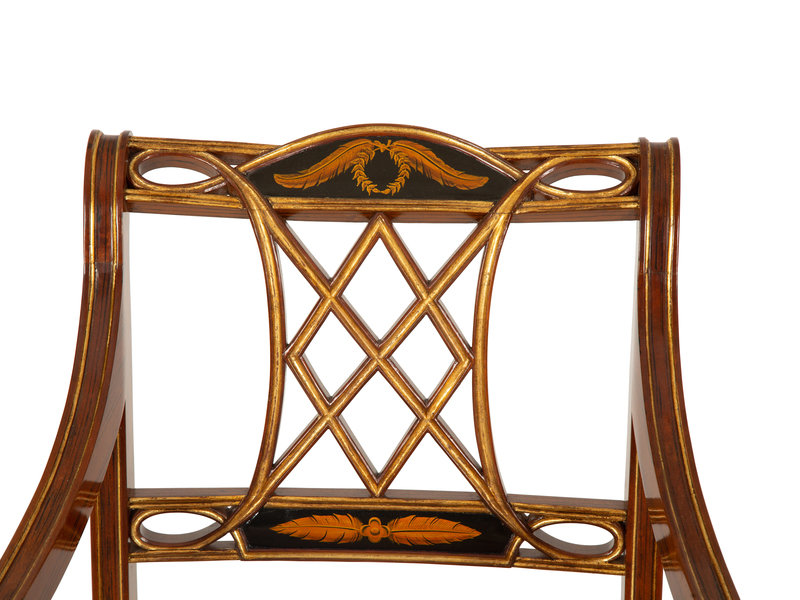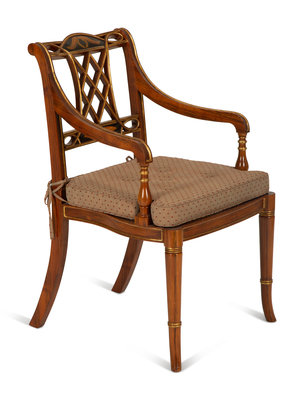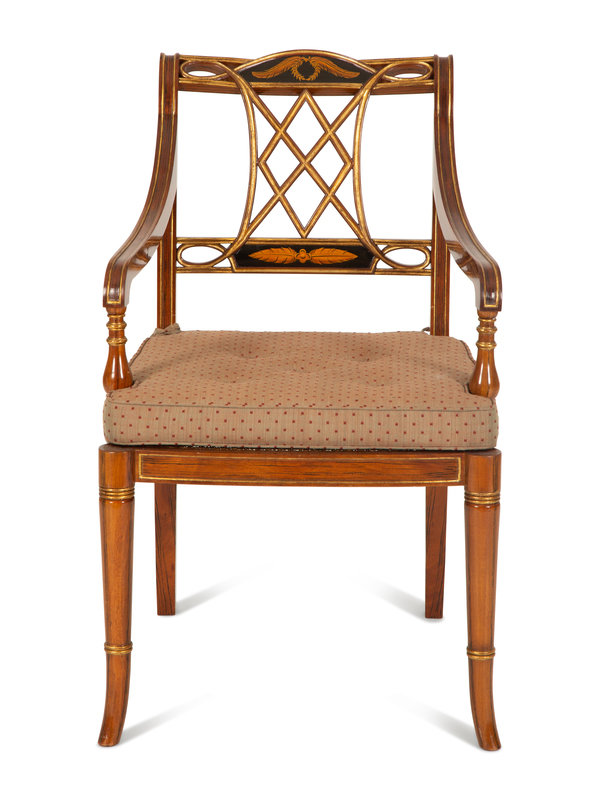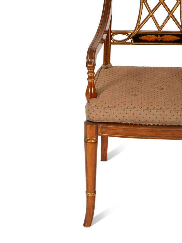 A Regency Style Rosewood and Parcel Gilt Open Armchair
