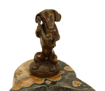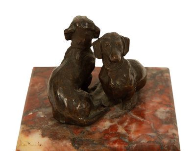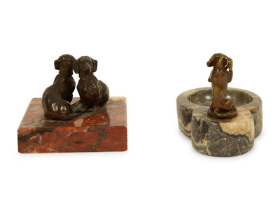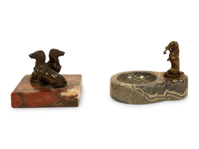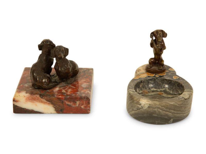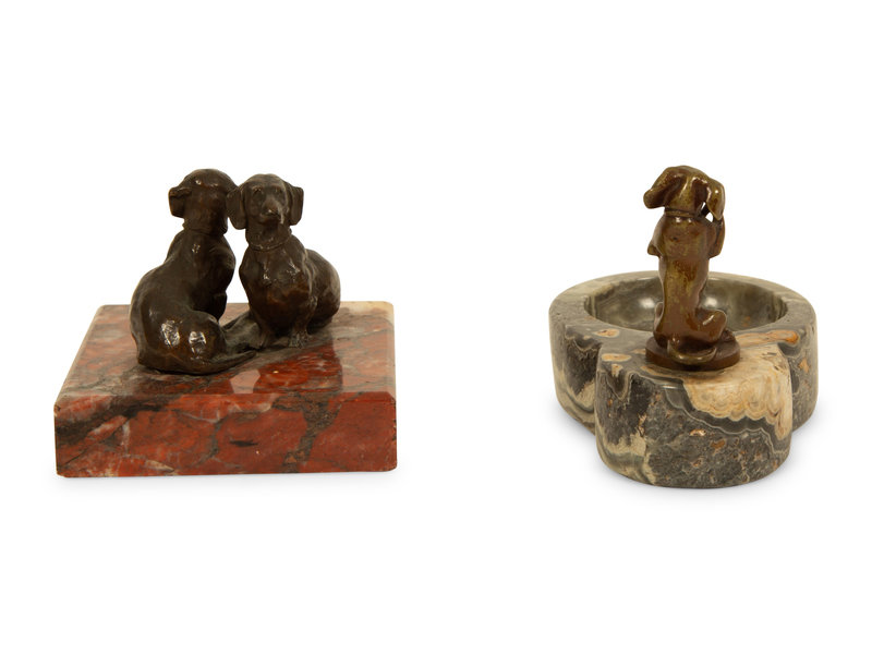 Two Continental Bronze and Marble Dachsund-Themed Desk Accessories