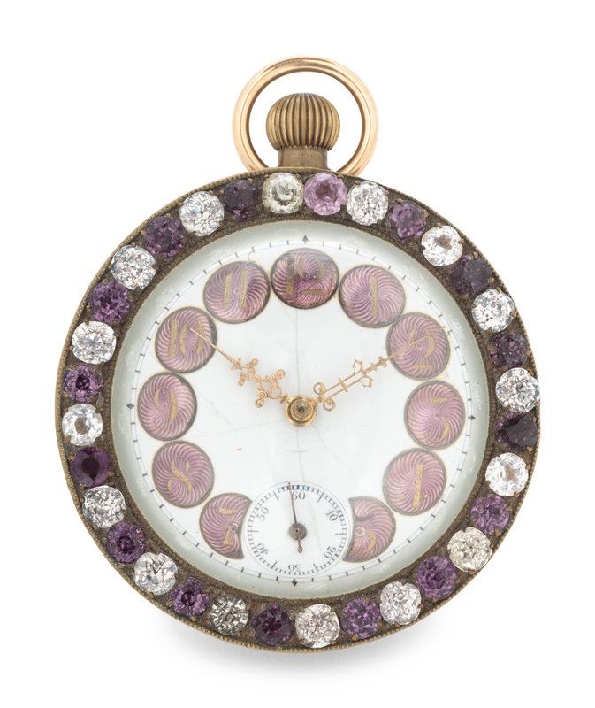 A Continental Guilloche Enamel and Jewel Decorated Table Clock