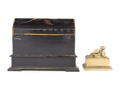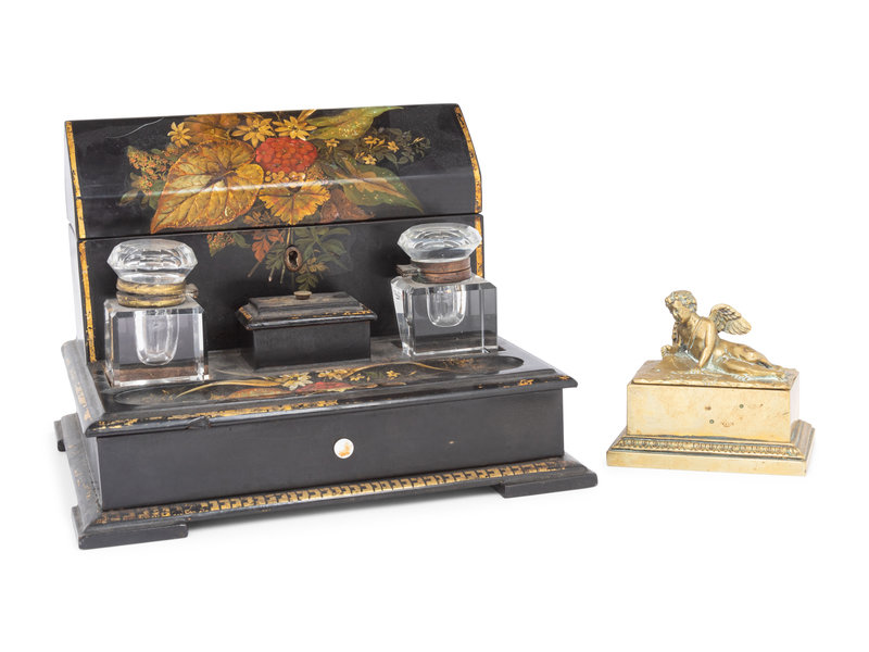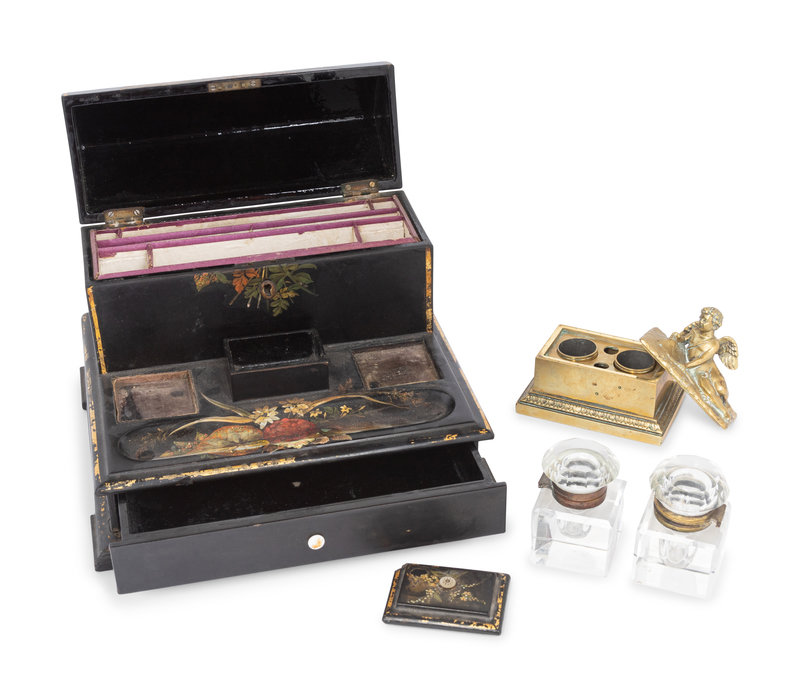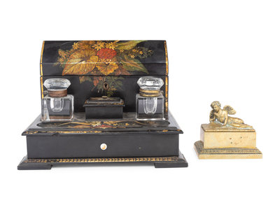 A Victorian Papier-Mâché Ink Stand and Stationery Box