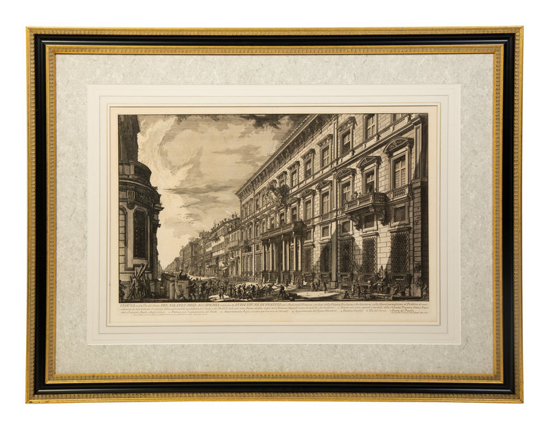 Two Etchings by Giovanni Battista Piranesi (Italian, 1720-1778), View along the Via del Corso of the Palazzo dell'Accademia