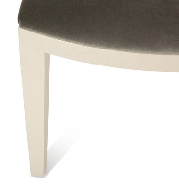 with a grey velvet upholstered seat.