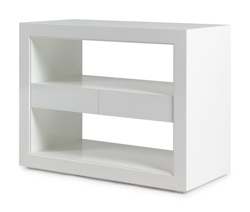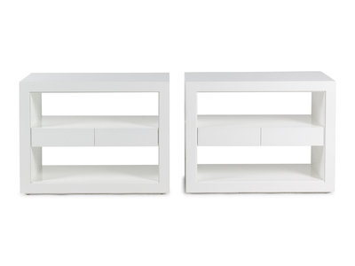 A Pair of Contemporary White Lacquer Finished Two-Tier Side Tables