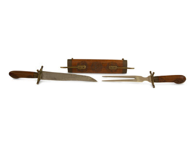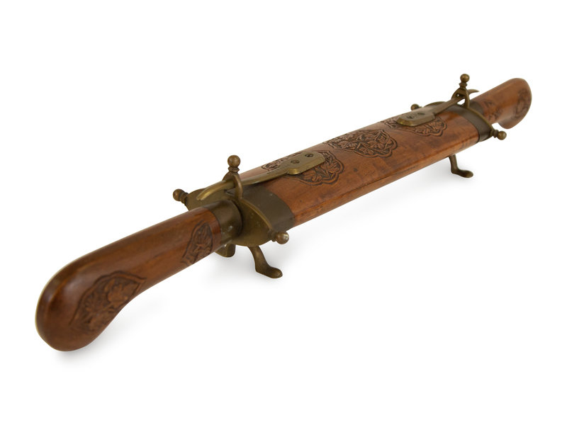 An Indian Carved Hardwood and Brass Dagger and Display Sheath