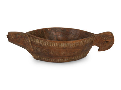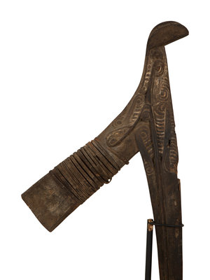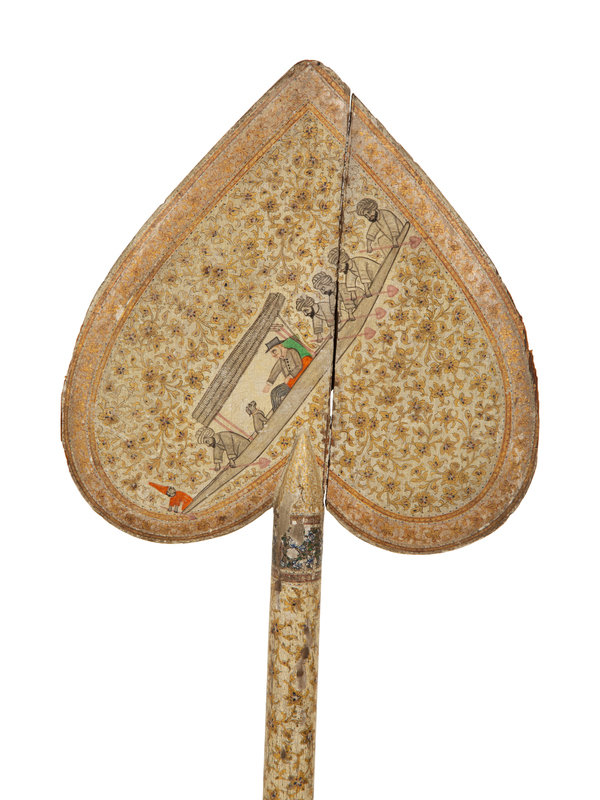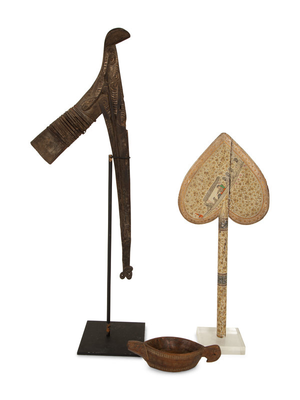 A Mughal Painted Wood Paddle and Two Oceanic Carved Wood Articles