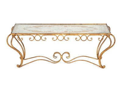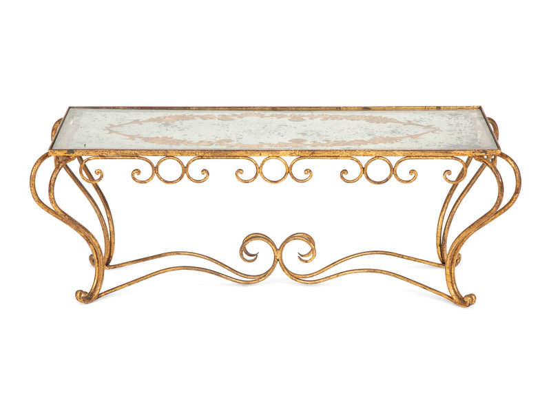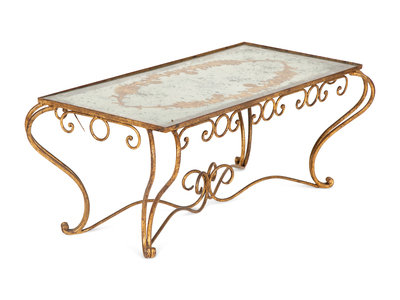 A Gilt Metal and Reverse Painted Glass Low Table