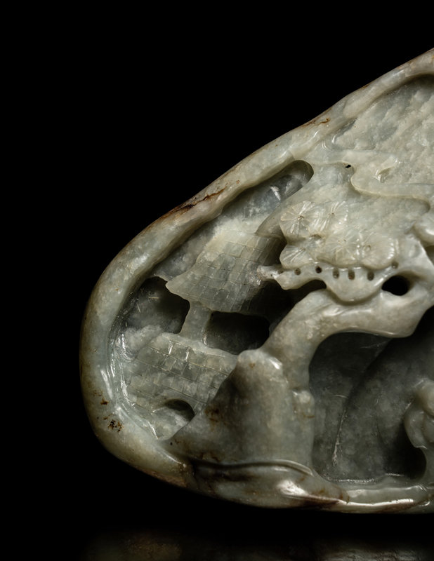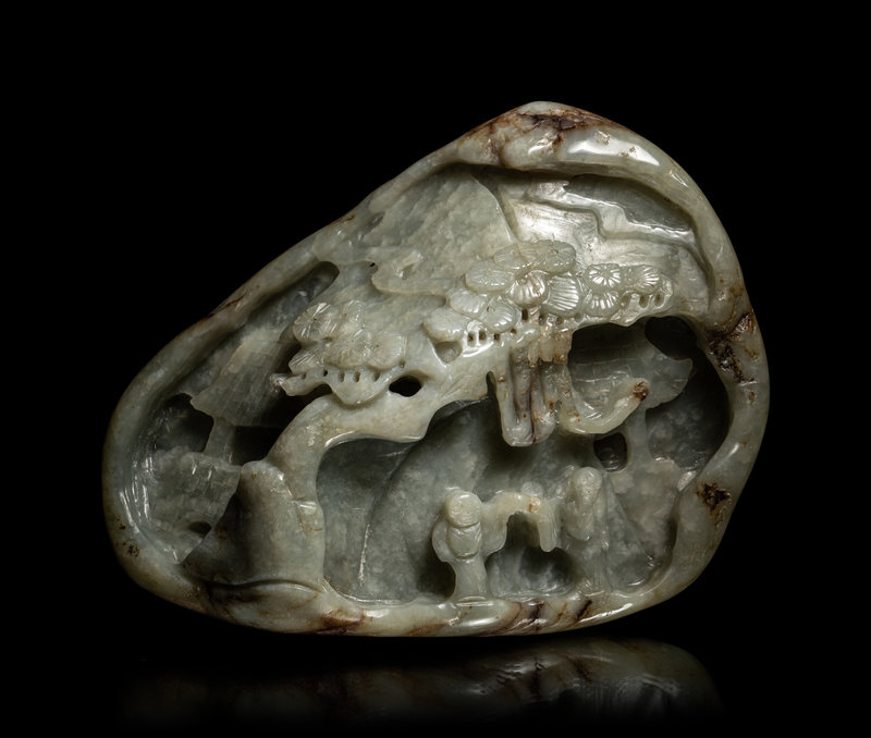 A Chinese Celadon Jade 'Landscape' Mountain