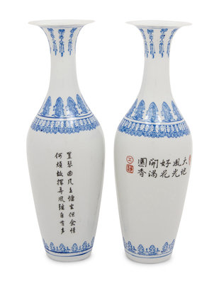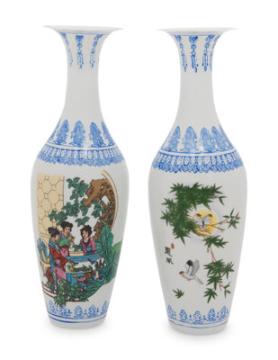 each of baluster form with lobed walls, delicately potted of eggshell porcelain, and incised to the underside with a six-character mark 中國景德鎮製.