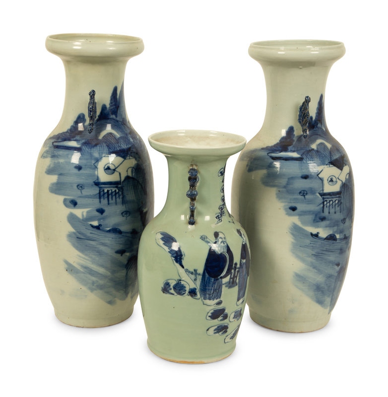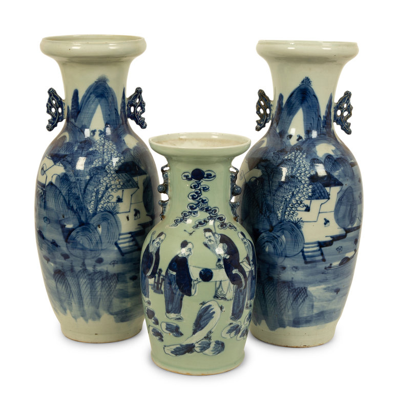 Three Chinese Blue and White Porcelain Vases