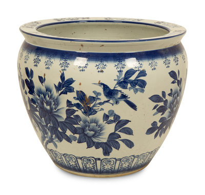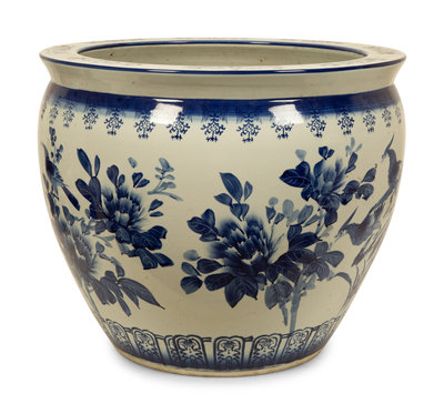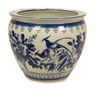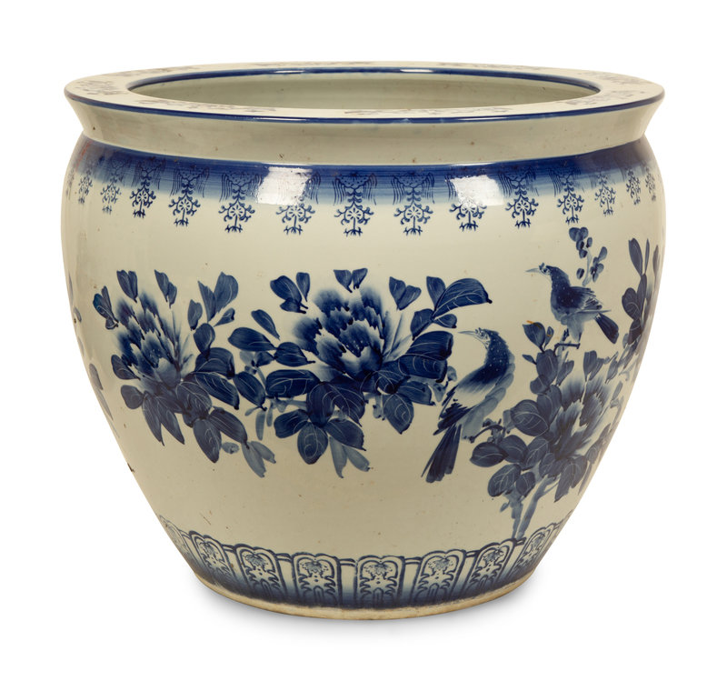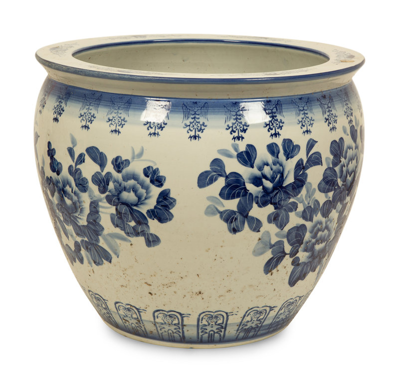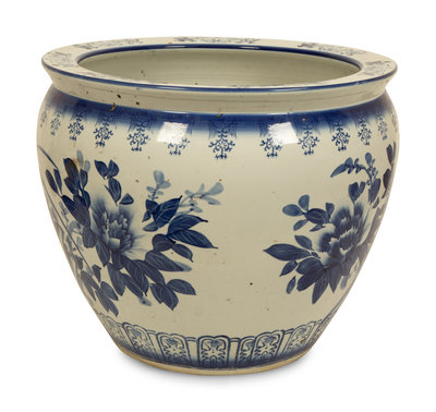 Three Chinese Blue and White Porcelain Fishbowl Jardinieres