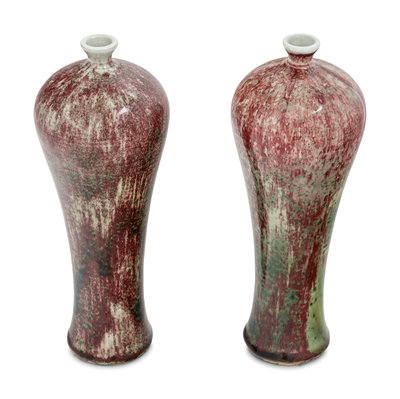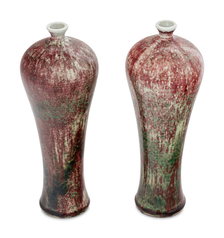 A Pair of Chinese Peach-Blossom Glazed Meiping Vases