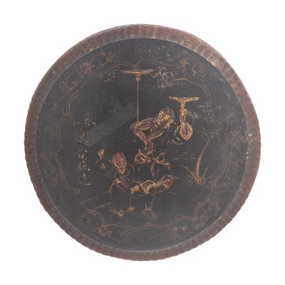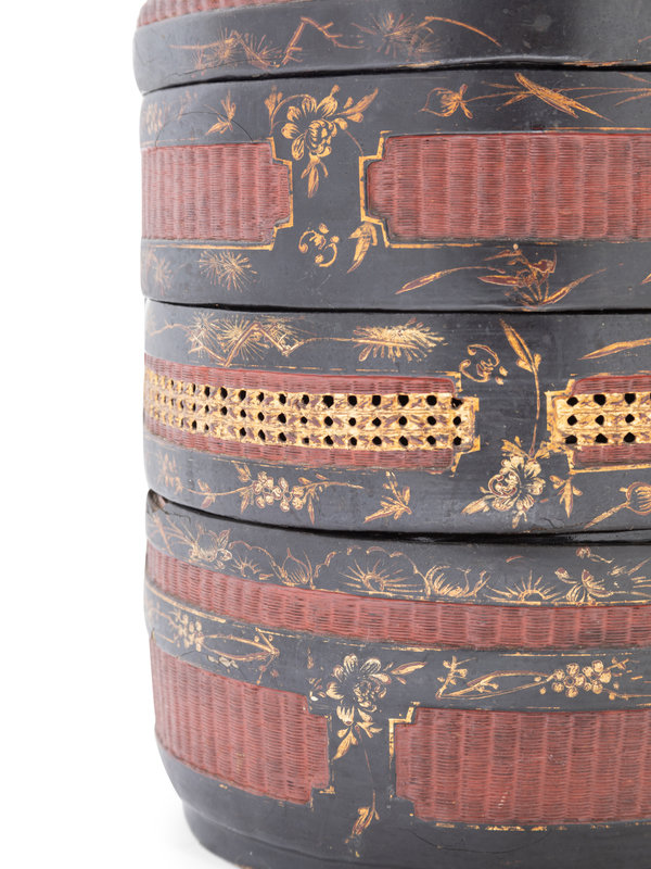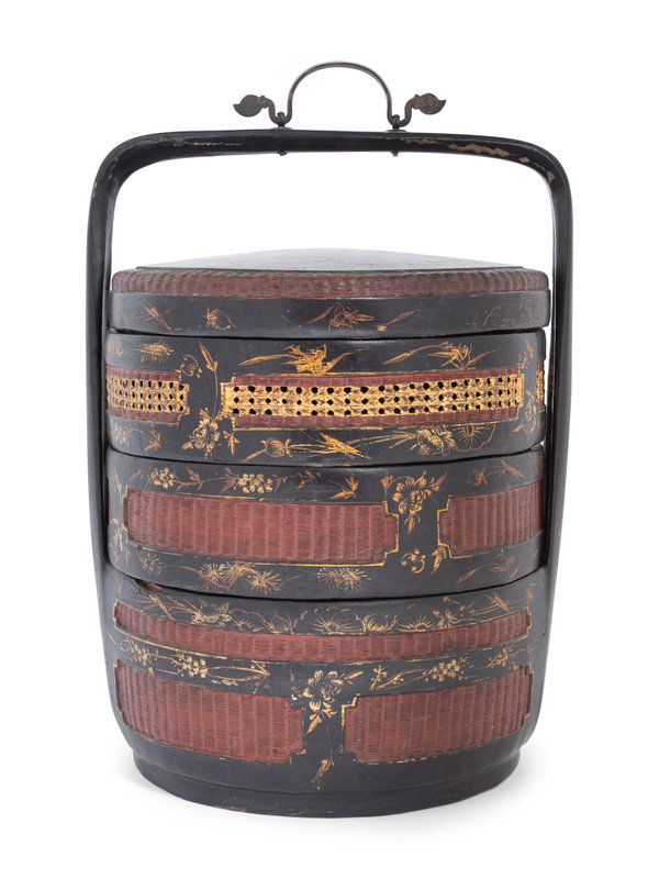 A Chinese Lacquered and Partial Gilt Two Tiered Basket