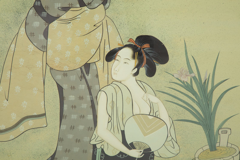A Modern Japanese Painting on Silk Floating in a Glass Frame