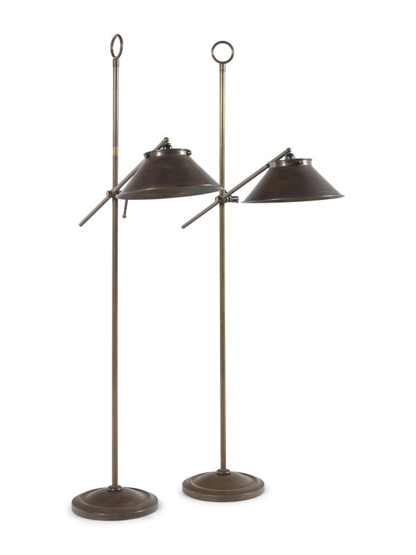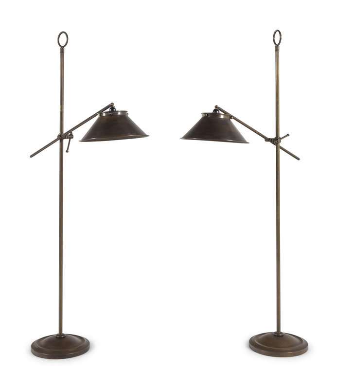 A Pair of Contemporary Patinated Brass Adjustable Floor Lamps