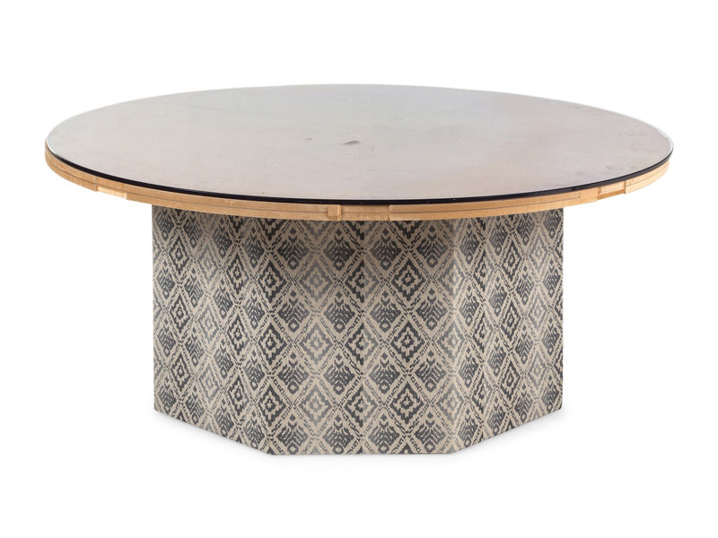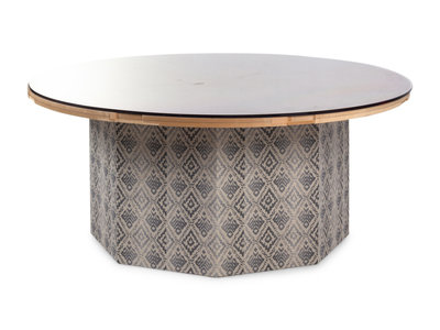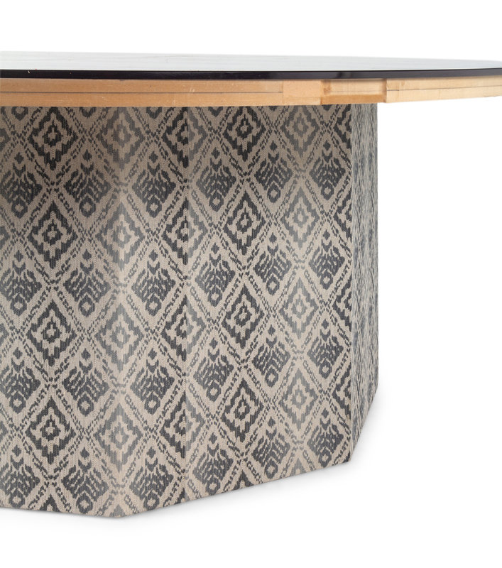 A Contemporary Octagonal Upholstered Dining Table Base with a Circular Glass Top