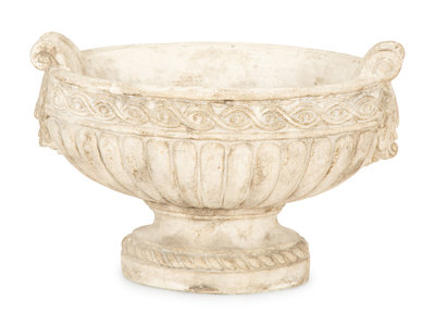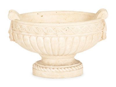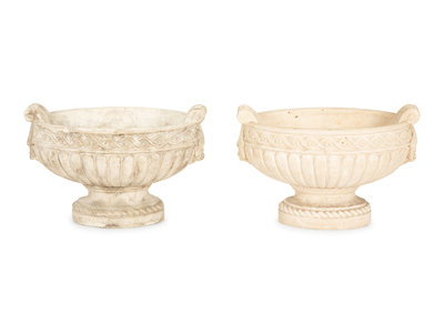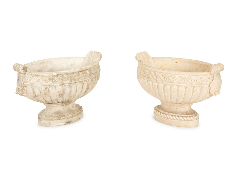 comprising a pair of campana form, and two smaller pots with putti decoration.