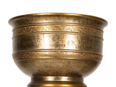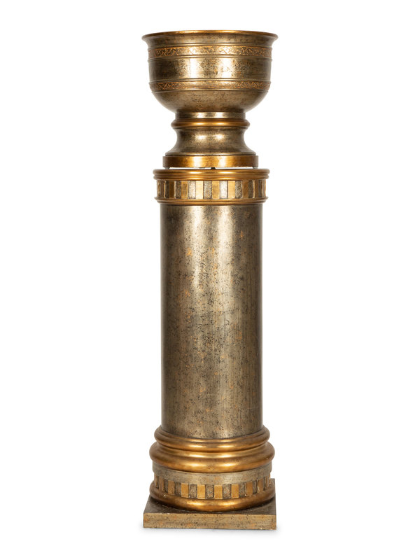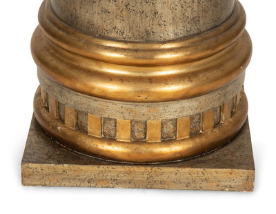 A Contemporary Silvered and Gilt Decorated Wood Urn on Pedestal Base