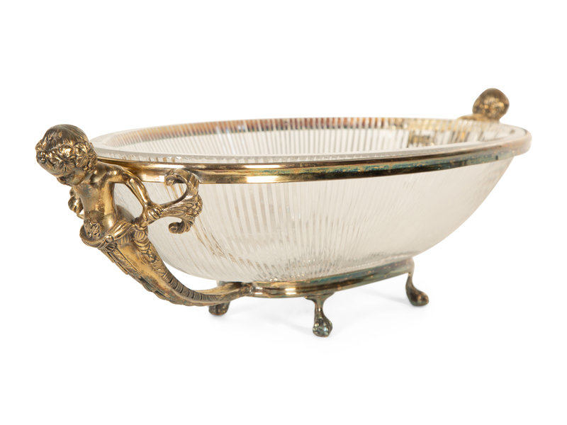 A Neoclassical Style Silver-Plate and Cut Glass Centerpiece Bowl