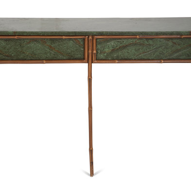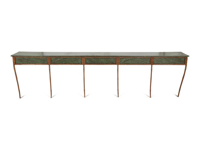 A Faux Bamboo and Faux Marble Painted Long Wall Console