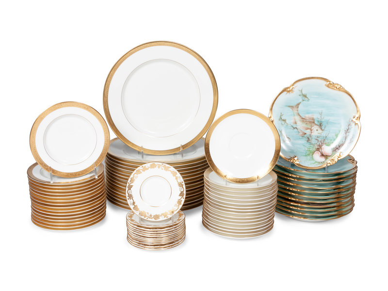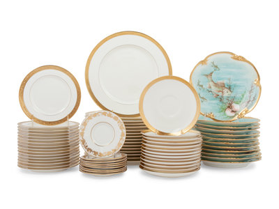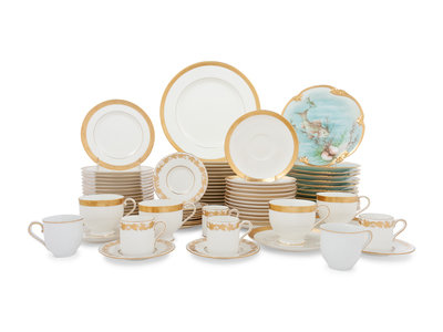 An Assembled Collection of Gilt-Edged Porcelain Dinnerware