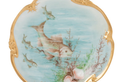 12 fish decorated salad plates;
