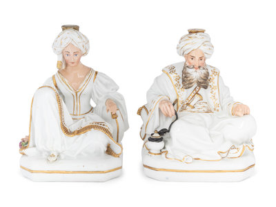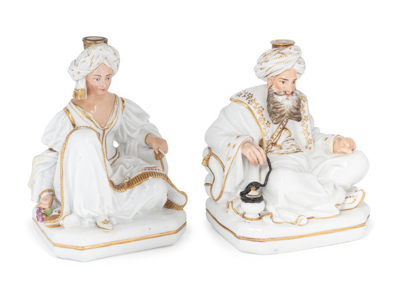 A Pair of Jacob Petit Porcelain Figural Candlesticks