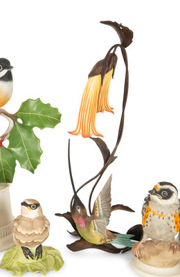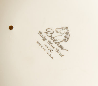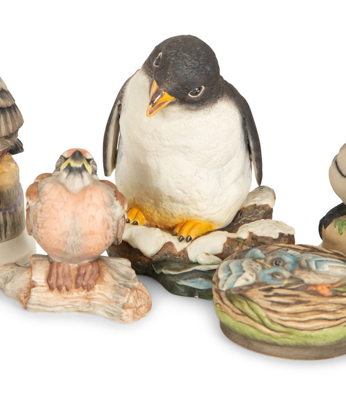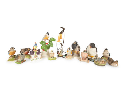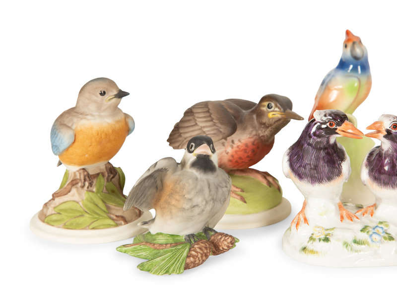 including Boehm, Meissen, a Bing & Grondahl, and an unmarked example.