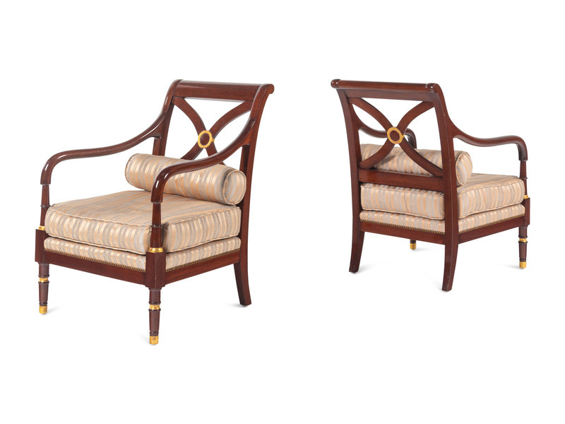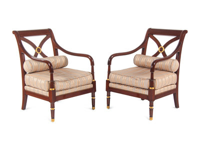 A Pair of Regency Style Parcel Gilt Armchairs