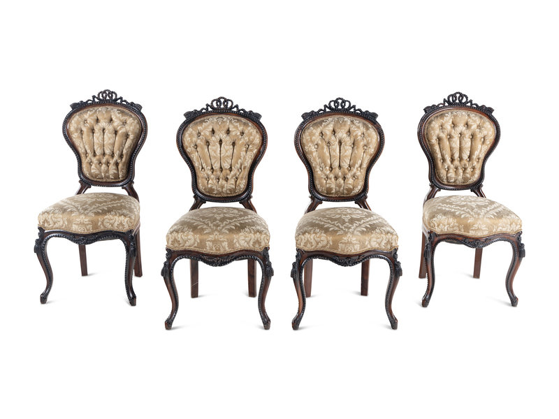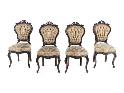 A Set of Four Rococo Revival Carved Balloon-Back Side Chairs