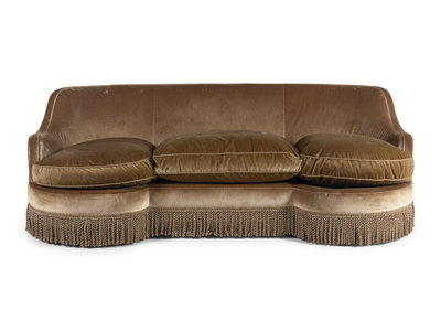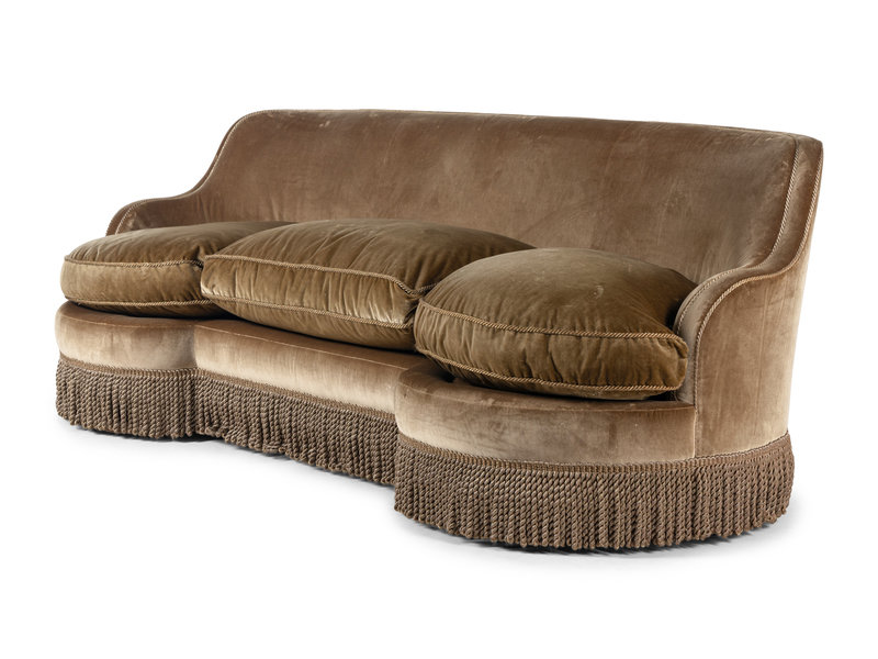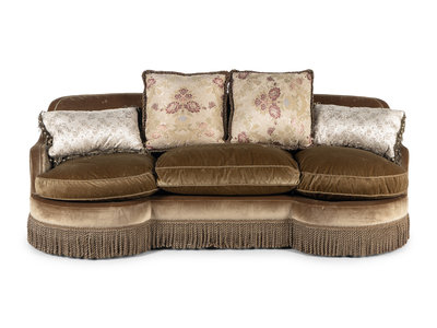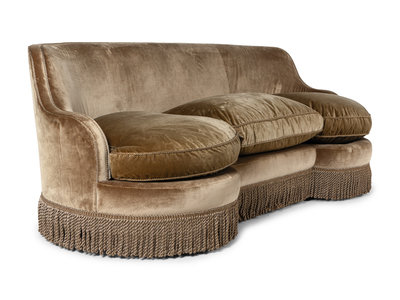 A Custom Velvet-Upholstered Reniform Sofa with Bullion Fringe