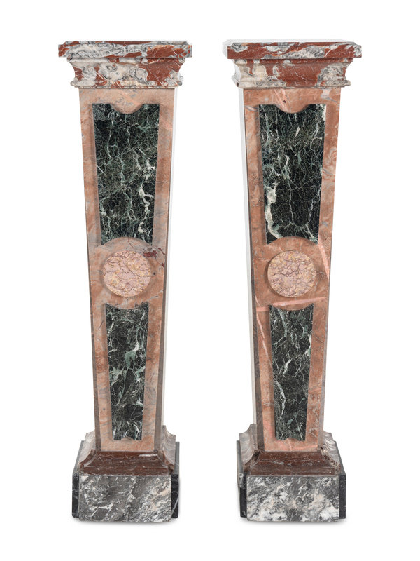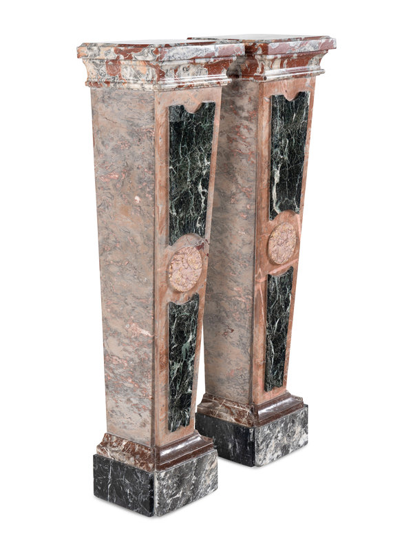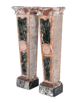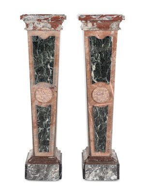 A Pair of Italian Incarnat, Vert de Mer and Fleur de Peche Marble Pedestals
