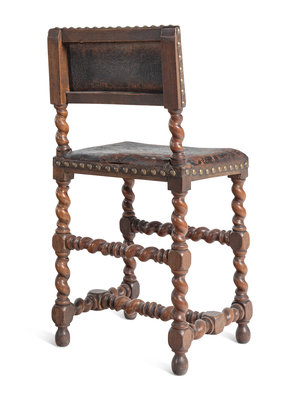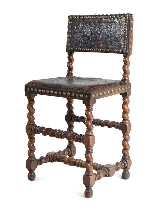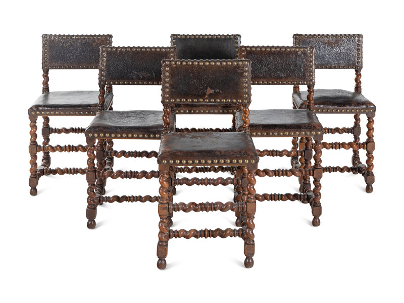 A Set of Six Spanish Baroque Style Walnut Dining Chairs