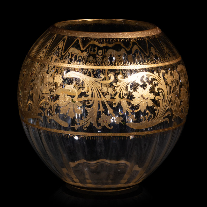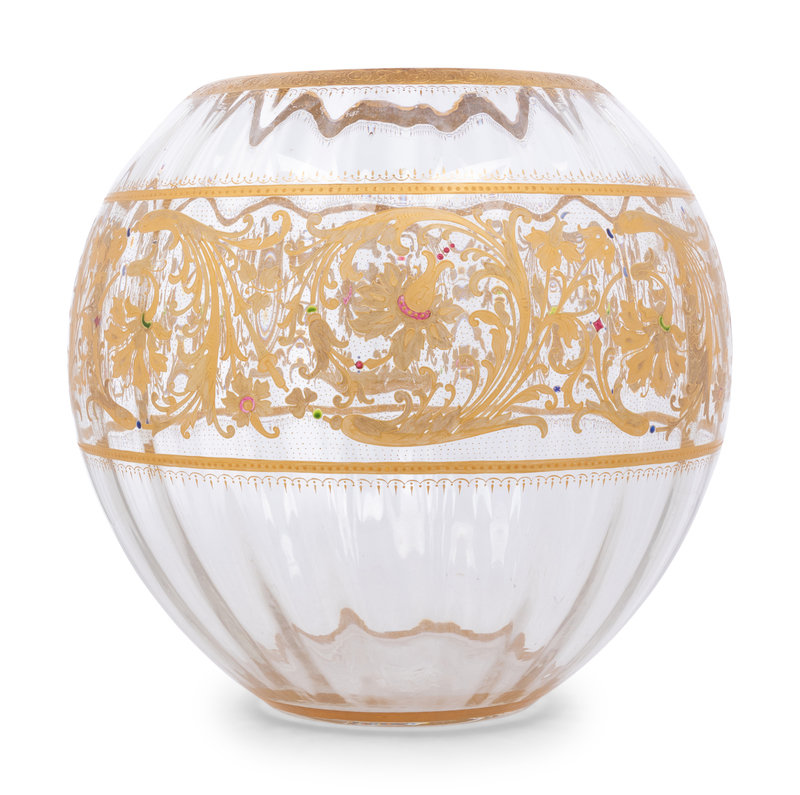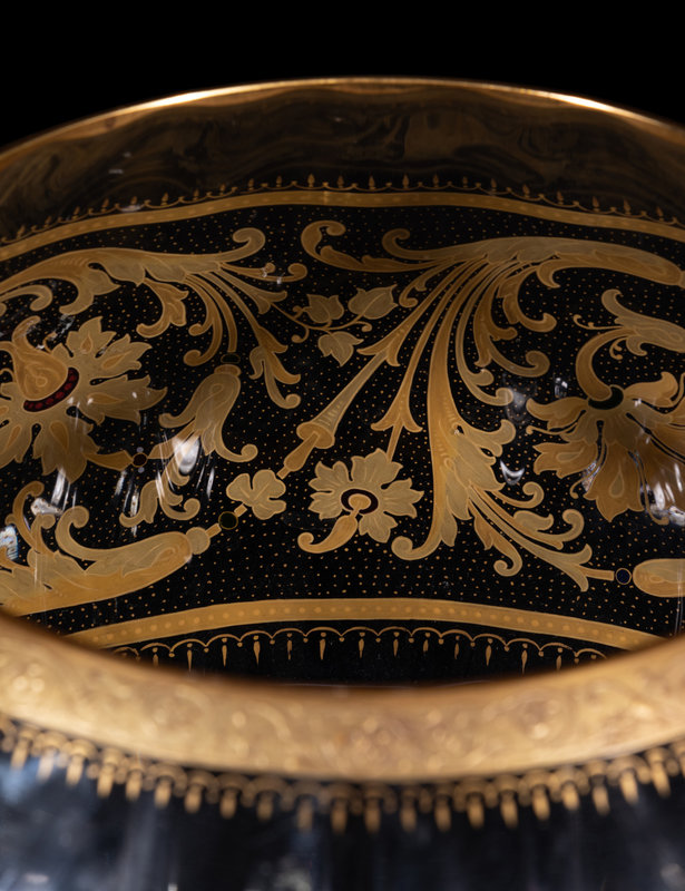 A Bohemian Gilt and Enameled Glass Centerpiece Bowl