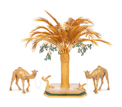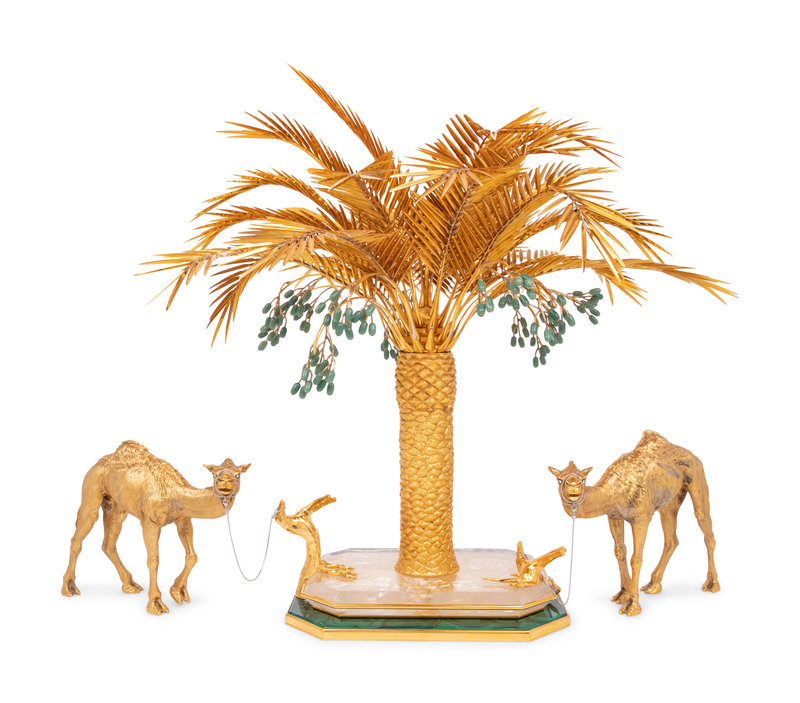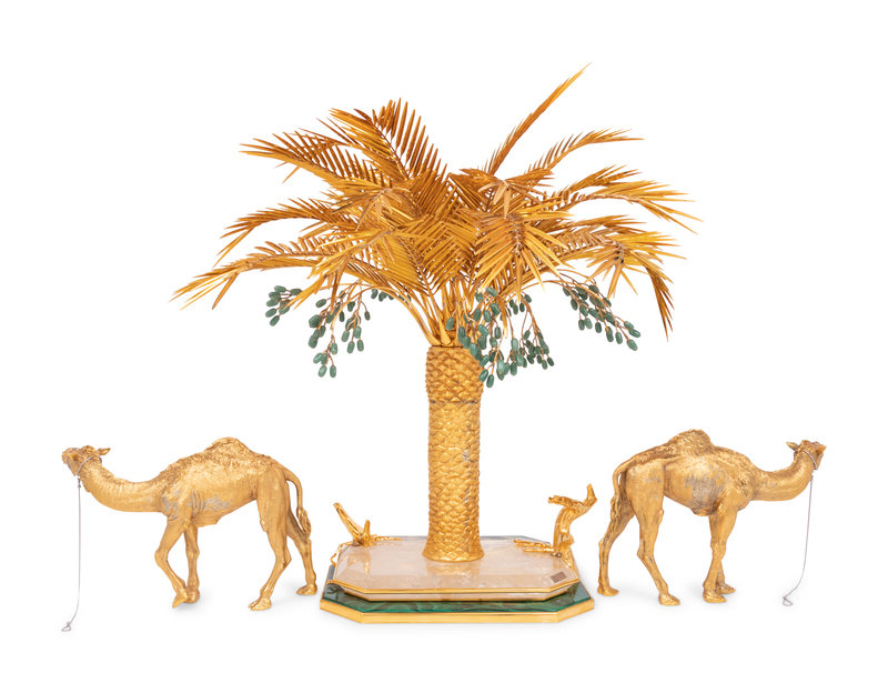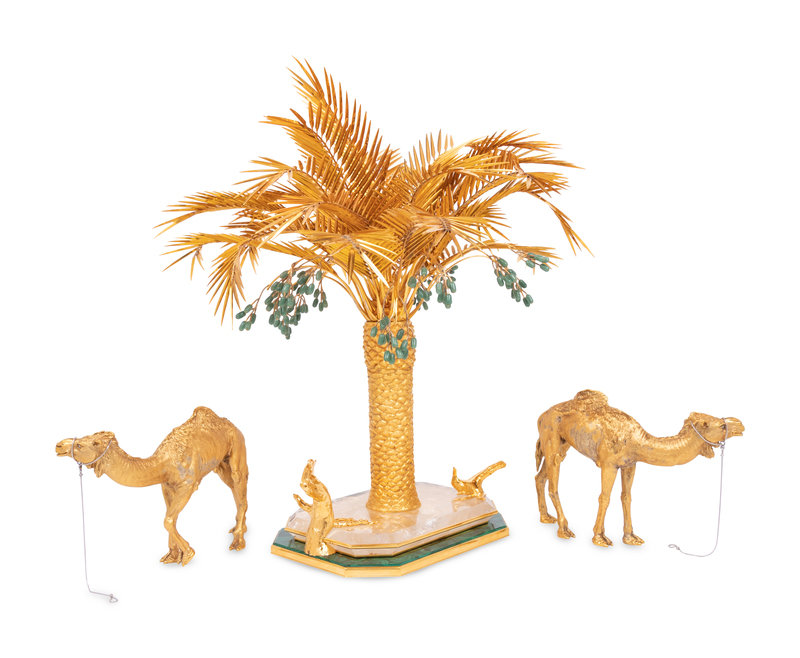 marked '925' with Swiss Canard mark on underside of Camel's hooves and on silver-gilt bands on base of centerpiece