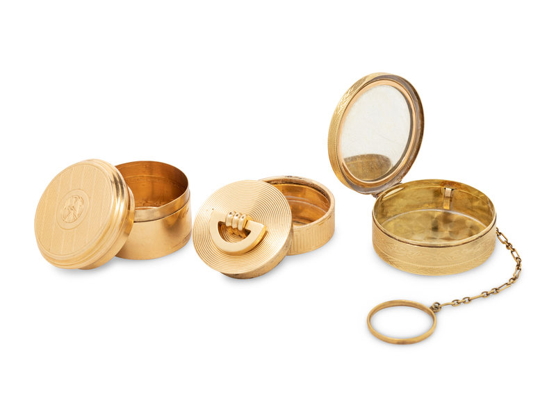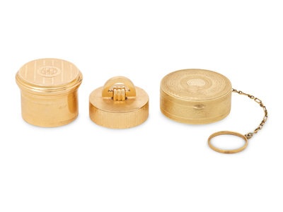 Two Cartier Gold Pill Boxes and Another Gold Pill Box