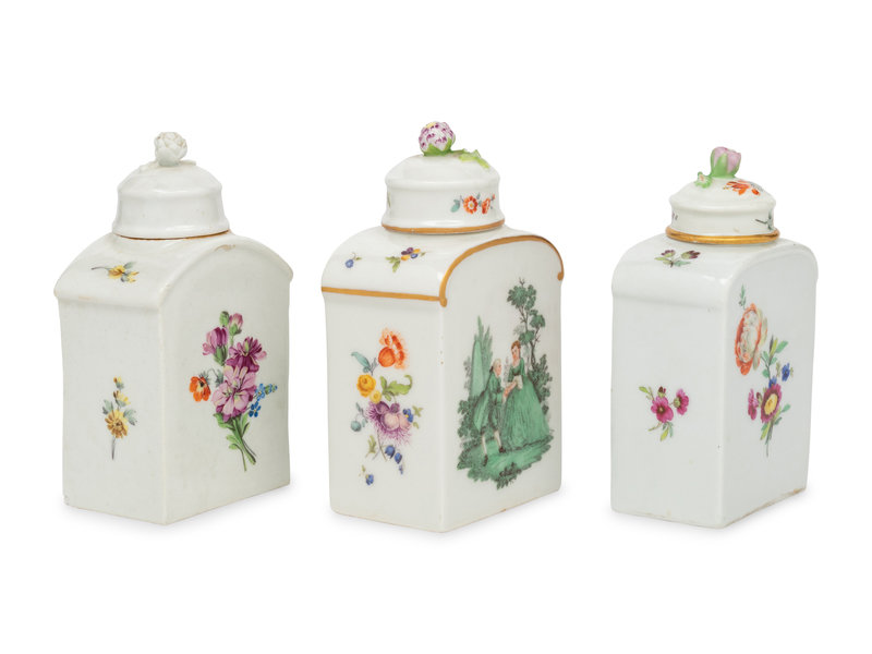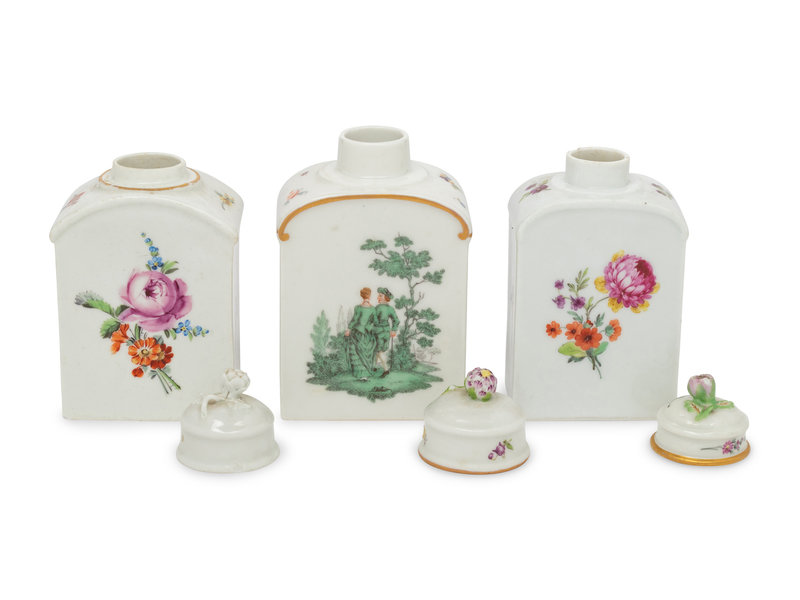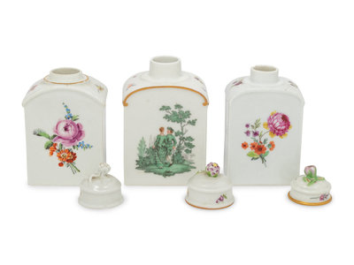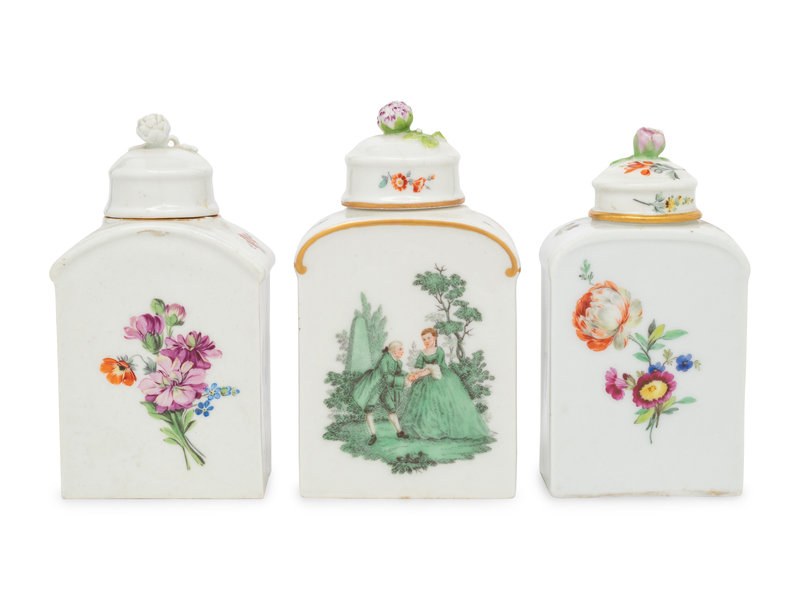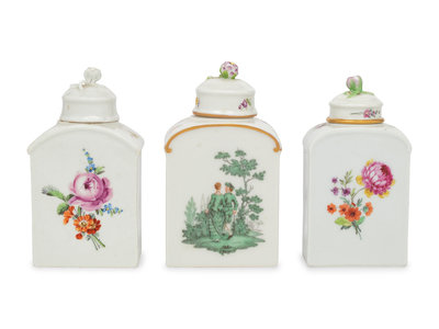 Three German Porcelain Tea Caddies