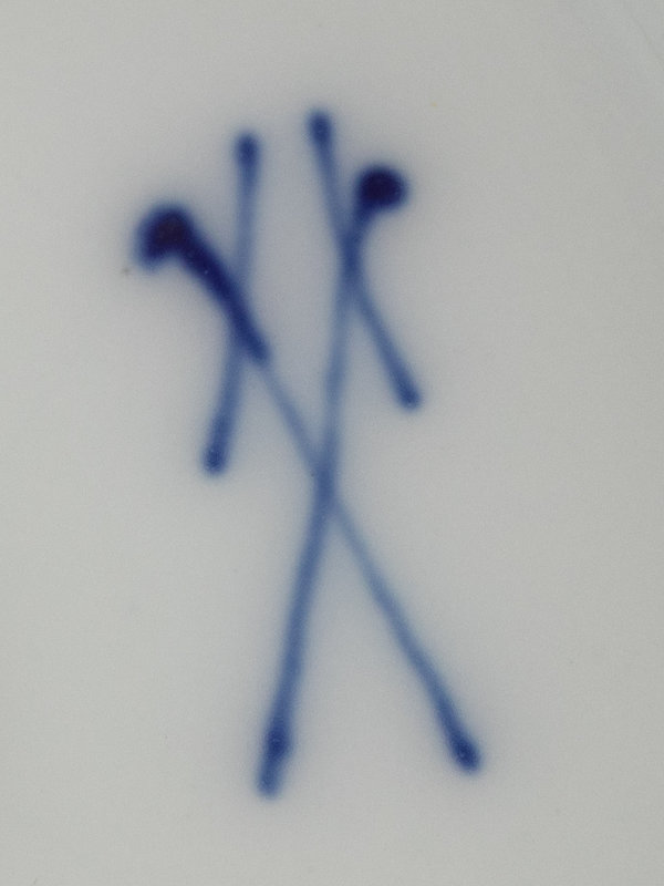 bearing blue crossed swords to the underside, further incised 20 20 and with script H.
