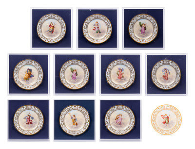 A Set of Twelve Dresden Porcelain Cabinet Plates