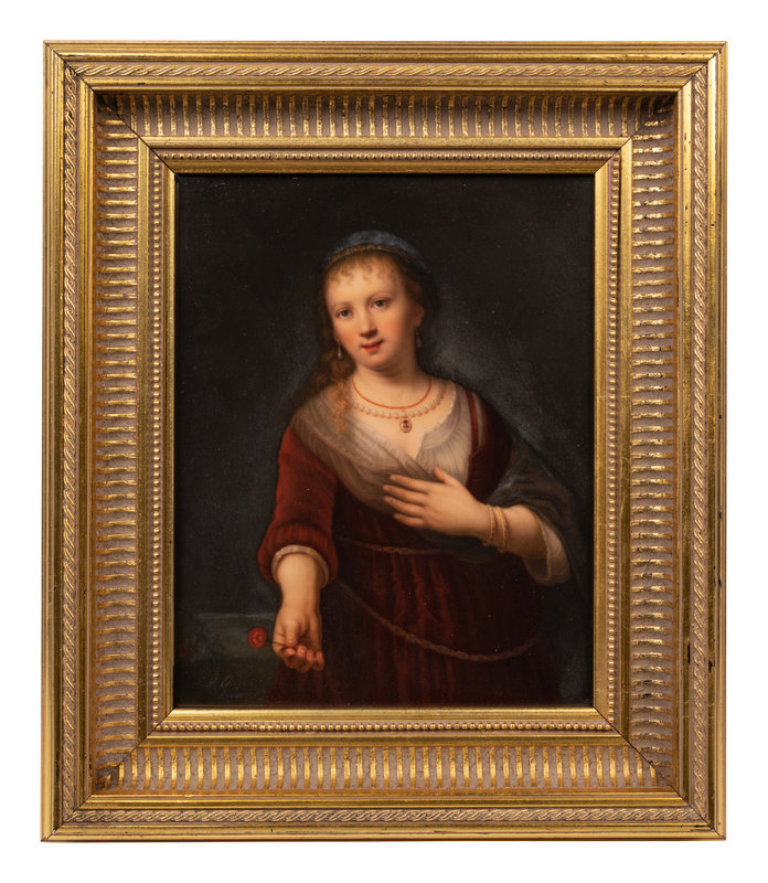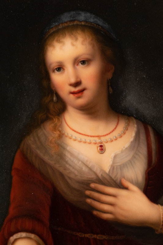 A Berlin (K.P.M.) Porcelain Plaque Depicting Saskia with a Flower After Rembrandt