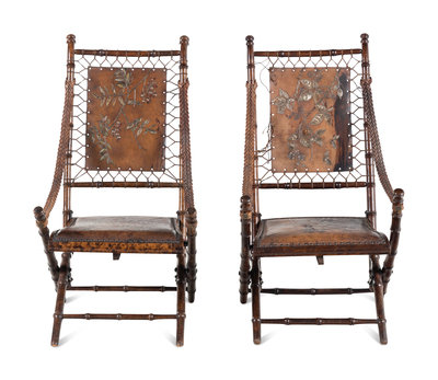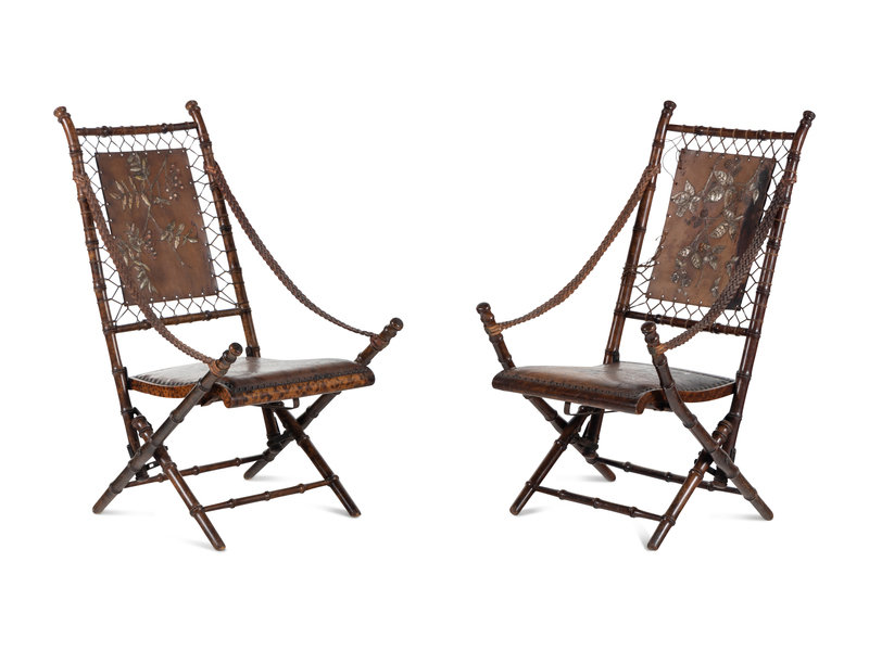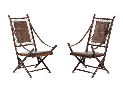 A Pair of English Aesthetic Movement Walnut Folding Chairs